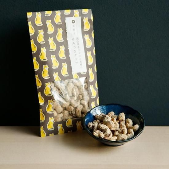 私たちの姉妹店『美観堂』がオリジナルで開発した、『岡山県産きなこと黒糖のやみつきナッツ』です。